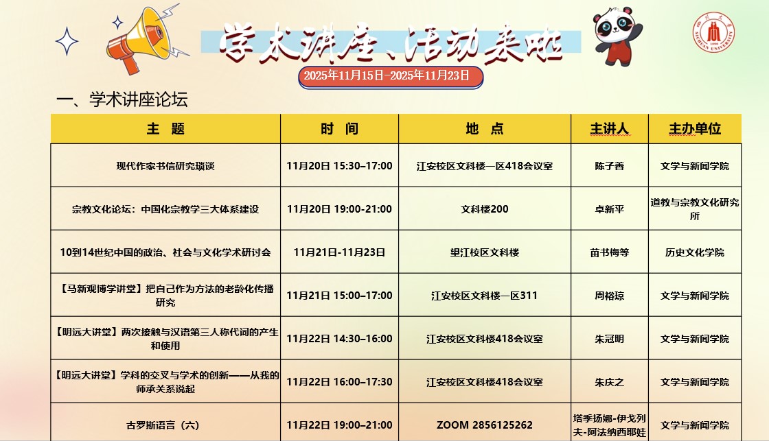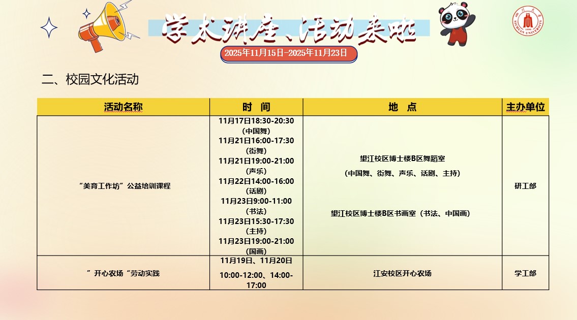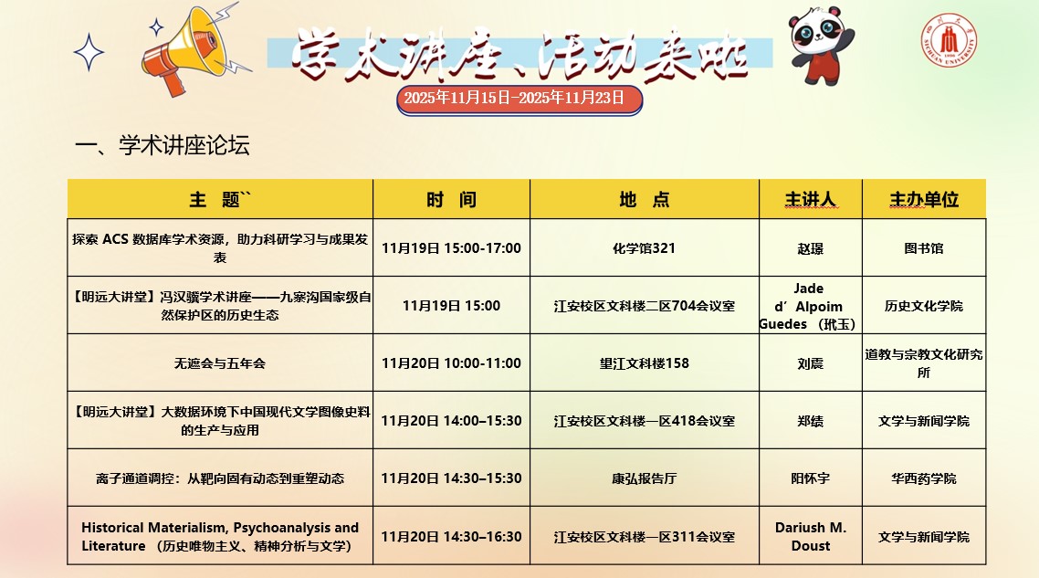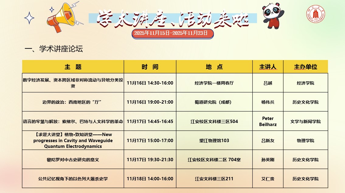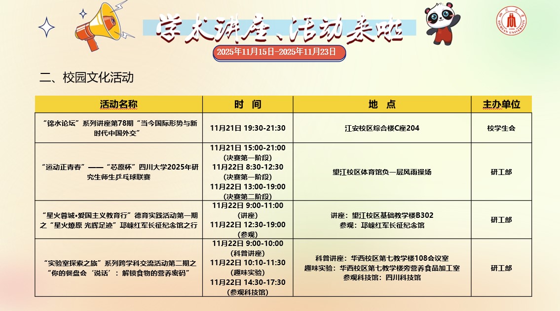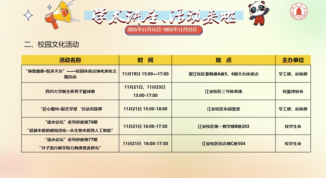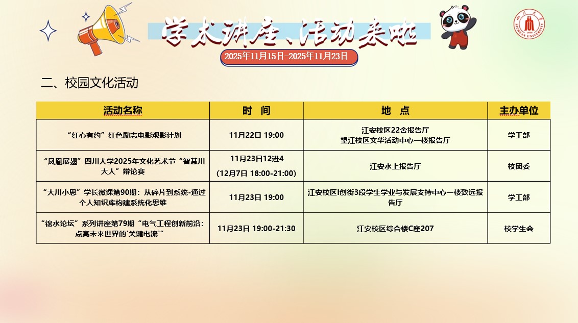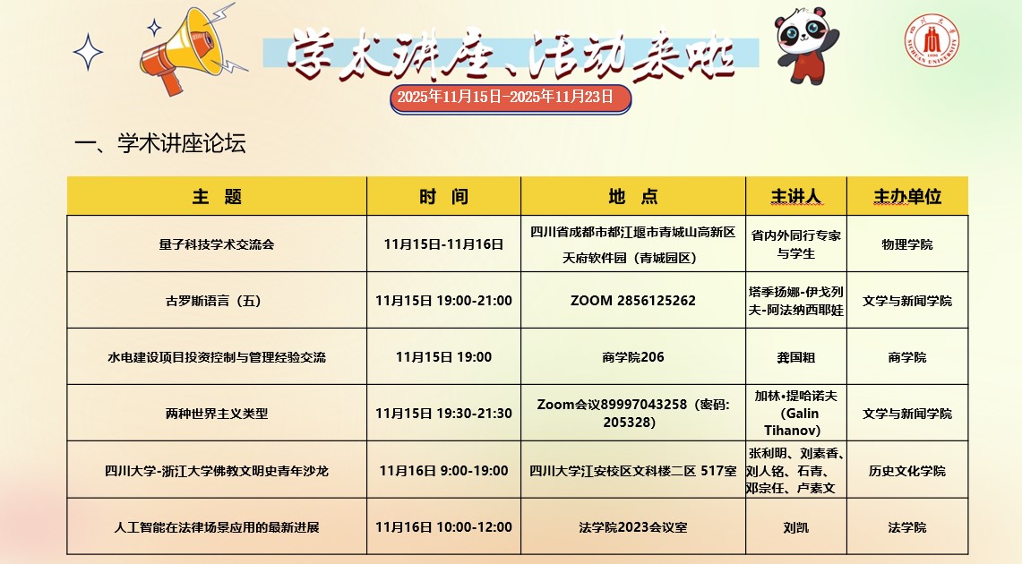 四川大学2025年11月15日-2025年11月23日学术讲座和校园文化活动预告