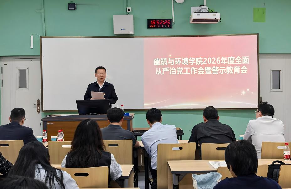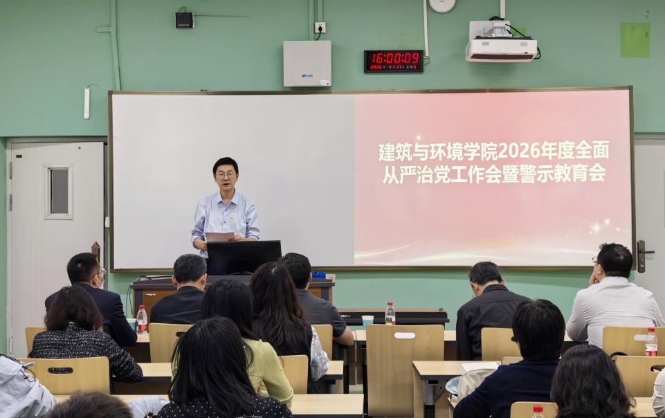 4月17日,建筑与环境学院召开2026年全面从严治党工作布置会暨警示教育大会。学校纪委副书记唐世红出席会议并讲话,院领导班子全体成员、两委委员、院长助理、科级干部、专职组织员、支部书记、支部纪检委员、系主任及教职工代表参加会议。院长戴峰主持会议。