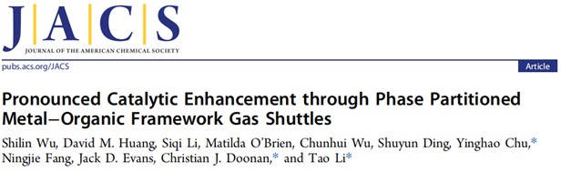 近日,学院楚英豪教教授团队在《Journal of the American Chemical Society》(JACS)在线发表了题为《Pronounced Catalytic Enhancement through Phase Partitioned Metal-Organic Framework Gas Shuttles》的研究性论文。学院环境科学与工程系2021级博士研究生伍世林为论文唯一第一作者,楚英豪教授、阿德莱德大学Tao Li和Christian Doonan教授为论文共同通讯作者,四川大学建筑与环境学院与阿德莱德大学为论文的共同通讯单位。
