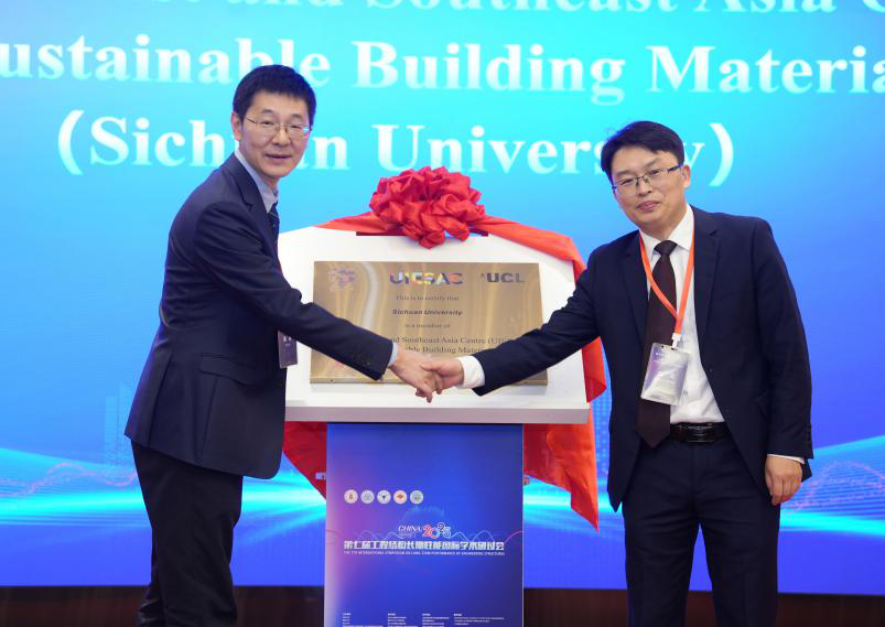 开幕式上,举行了英国混凝土技术协会东亚及东南亚中心揭牌仪式,英国伦敦大学学院(UCL)白云教授担任中心主任,四川大学为中心创始成员单位之一,联合全球可持续建筑材料领域的优势力量,为东亚及东南亚国家的混凝土工程从业技术人员提供培训及资质认证服务。白云、戴峰共同为中心揭牌。