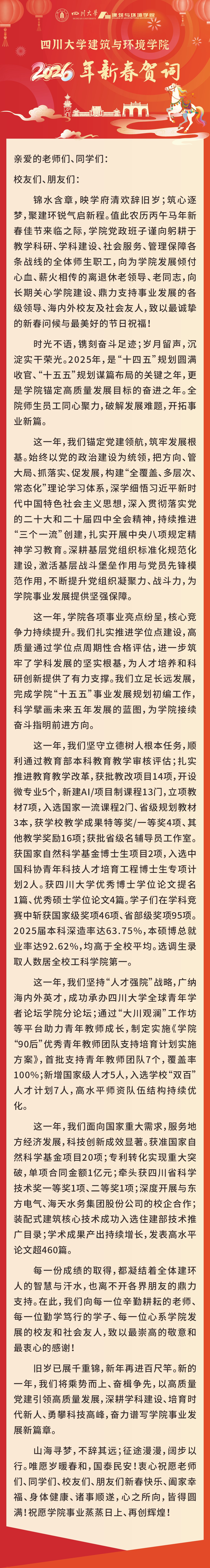 四川大学建筑与环境学院2026年新春贺词