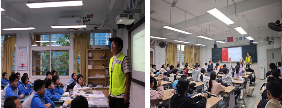 为全面贯彻落实习近平总书记致全国青联十四届全委会、全国学联二十八大的贺信精神,强化政治引领,筑牢信仰根基,引导青少年树立 “强国有我” 远大志向, 10 月 20 日,学院“开拓者”青年志愿者队赴双流区西航港第二中学开展主题为“跨越时空的榜样力量”的宣讲活动。